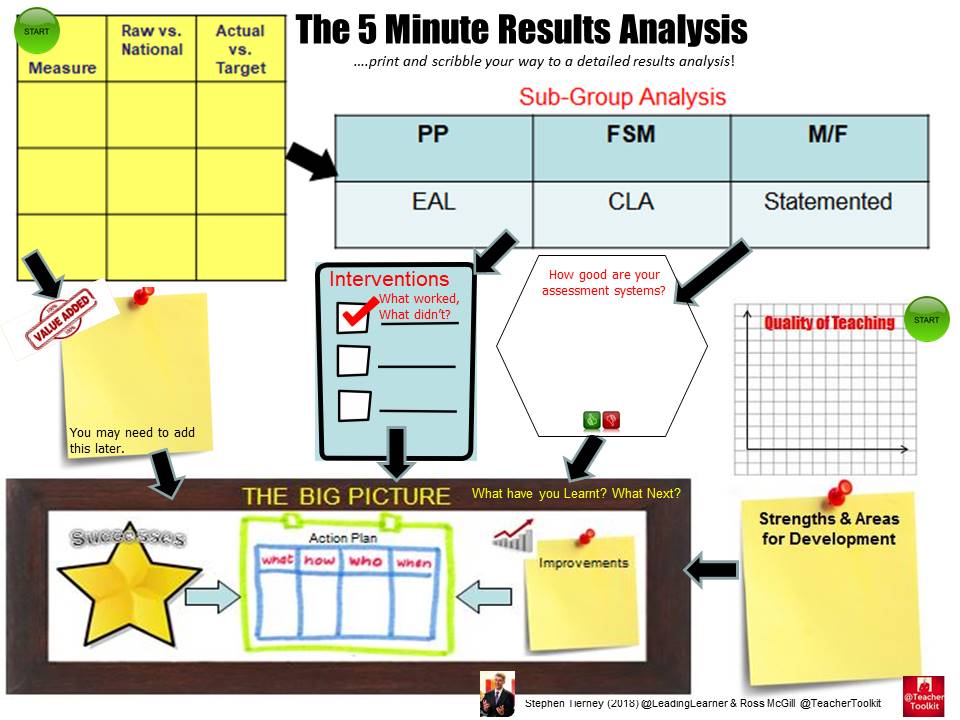 The #5MinResultsAnalysis has been produced by @LeadingLearner and @TeacherToolkit to guide you through the process of analysing your own/department’s/phase’s/school’s results and leads you towards “The Big Picture”, so you know what went well and what you want to improve for this year’s classes.