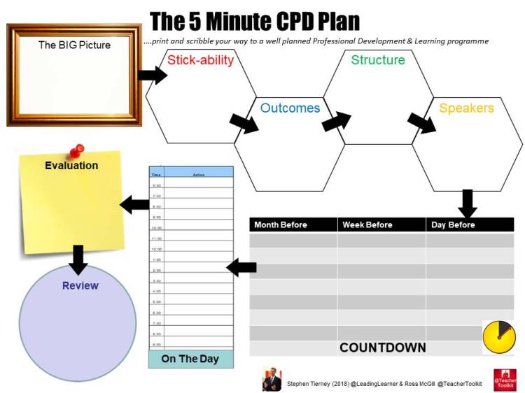 The #5MinCPDPlan has been developed by @LeadingLearner & @TeacherToolkit to help schools maximise the impact of their CPD.