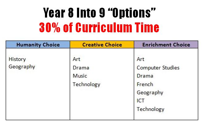 Last year we introduced a limited option choice for students as they transfer from Year 8 to 9. They can study, for 10% of their week, either History or Geography, a creative subject and a free choice from the enrichment block. We thought it would be a good idea but didn’t anticipate how successful it would be.