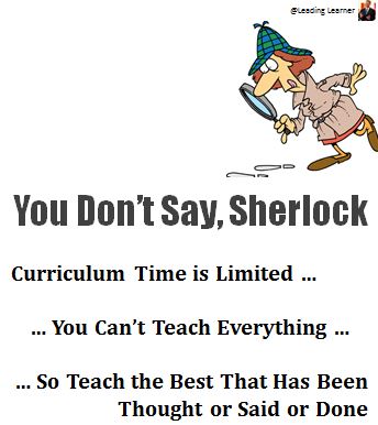 This schema (which I think might be more successful than the first one) is an attempt to pull together a coherent process for planning the learning. Planning learning is likely to serve you well, throughout your career, as what we require students to learn doesn’t change massively over time. The starting point is the best that has been thought or said or done as this is the