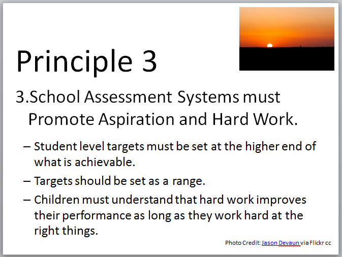 Principle 3 – School Assessment Systems must Promote Aspiration and Hard Work