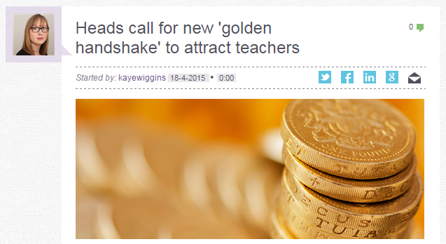 My eye was also caught by the TES article, Heads Call for New “Golden Handshake” to Attract Teachers