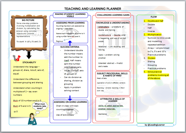Multiplication and Division Learning Planners Y1-4