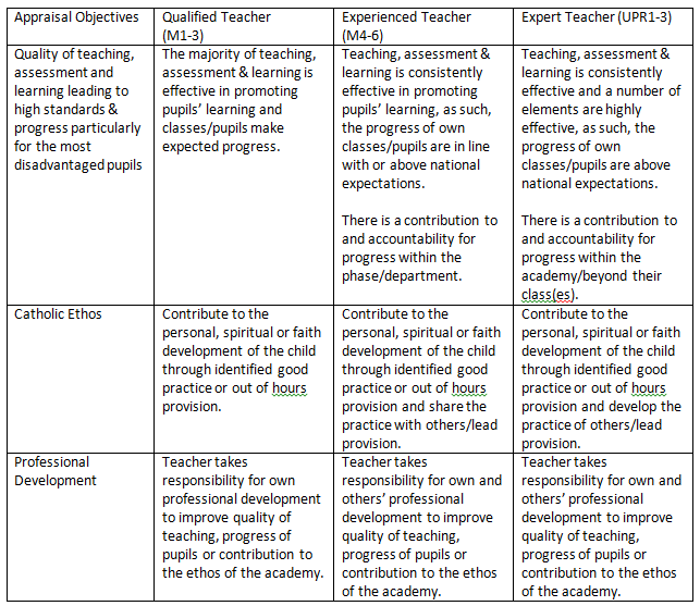 An initial meeting in June of the academic year will focus on identifying future professional development needs and priorities followed by a mid-year review to discuss the impact of the professional development agreed. The mid-year meeting will also be used to record of the contribution to the Catholic Ethos and, where applicable, to the professional development support provided to colleagues. The final review meeting during June will again look at these three issues.