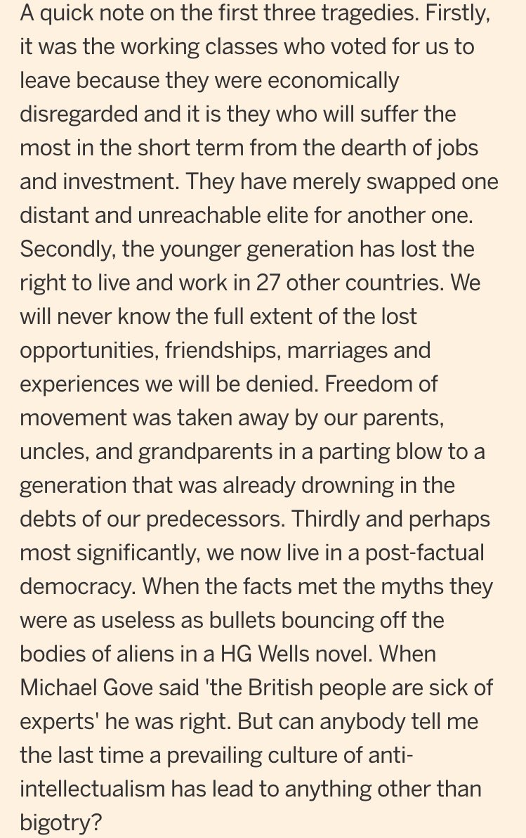 “I’m so angry. A generation given everything: Free education, golden pensions, social mobility have voted to strip my generation’s future”