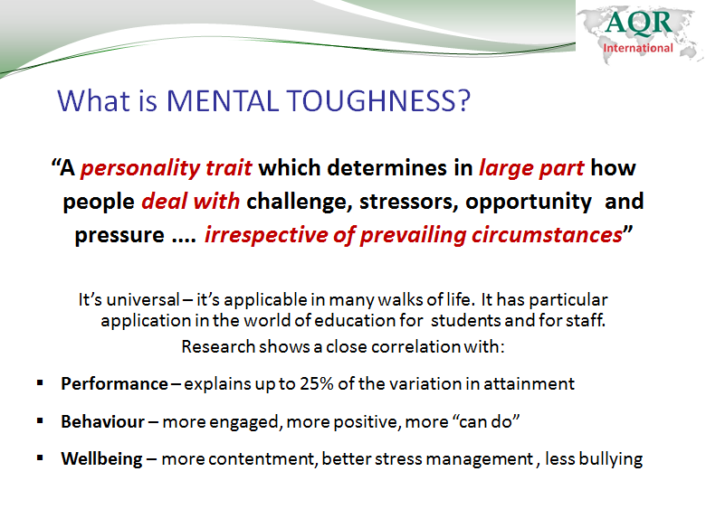 Mental Toughness describes that aspect of personality which determines how we think and why we behave and feel the way we do.