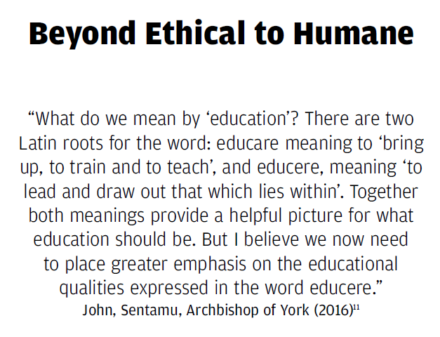 Similar challenges are faced when holding schools accountable for the quality of education provided. In helping develop the Headteachers’ Roundtable Alternative Green Paper, Schools that Enable All to Thrive and Flourish, we called for an end to the use of attainment outcomes. The most valid conclusion which may be drawn from attainment outcomes relates more to a school’s intake than its effectiveness. Our call for a three year contextual valid added measure would be a major step forward, if adopted. The new Progress 8 measure makes this a possibility for secondary schools but we are years away from developing a reliable and valid measure for primary schools. However, even if we can move towards a multi-year progress measure many would argue that this gives a very limited view of what a good school should be. As John Sentamu, the Archbishop of York (2016) states education is about both educare and educere. We are much better at assessing the first rather than the latter.