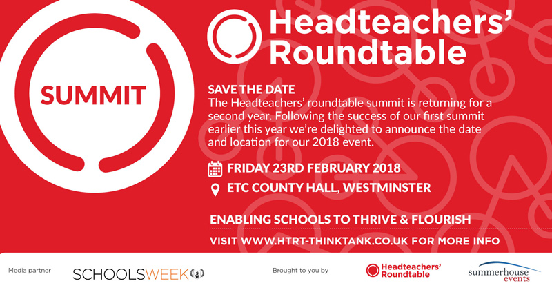 If you enjoy thinking at a policy level you’d be welcome to join us at the Headteachers’ Roundtable Summit. The early bird discount is available until the 31st January 2018; you can book here.