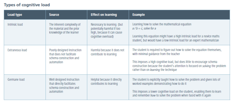 3. Cognitive Load Theory – Sweller via CESE